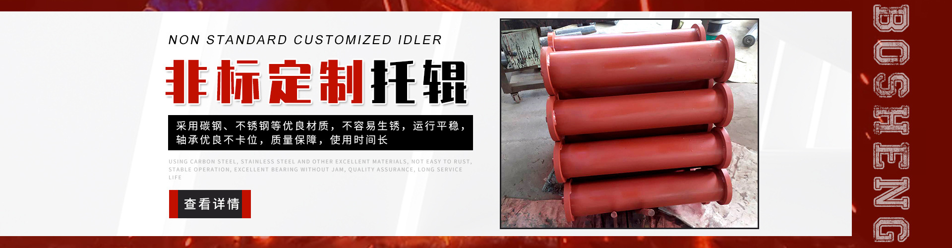 泰安博晟礦山機械有限公司位于山東泰安新泰市汶南鎮(zhèn)陳糧村。緊鄰京滬、京福、萊新高速公路。公路交通極為方便,環(huán)境優(yōu)美。公司主要生產(chǎn):托輥、托輥配件、托輥支架等皮帶輸送機配件。歡迎各界商友前來洽談考察。聯(lián)系電話:13954880316. 泰安博晟礦山機械有限公司采用國際標(biāo)準(zhǔn)設(shè)計、制造技術(shù),將托輥的設(shè)計和制造提高到了一個更高的水平,生產(chǎn)的托輥具有小的旋轉(zhuǎn)阻力,長的壽命,小的維修工作量和高的承載能力。鋼管采用托輥專用高頻焊管,管內(nèi)做去刺處理,圓度控制在特殊的公差范圍之內(nèi)。軸是按標(biāo)準(zhǔn)公差加工的冷拉鋼制造。軸承座采用進(jìn)口冷扎鋼板經(jīng)多次工藝沖壓而成。托輥管和軸承座被自動焊接機械手焊接在一起,形成一個具有很高強度的整體構(gòu)造。托輥軸承采用國內(nèi)外知名品牌的大游隙深溝球雙密封軸承,使托輥具有理想的靜平衡和動平衡,其旋轉(zhuǎn)阻力優(yōu)于國標(biāo)。托輥密封采用綜合國外和國內(nèi)迷宮式密封的特點進(jìn)行了專門設(shè)計,內(nèi)充耐高速高溫和超低溫抗氧化鋰基酯,有效防止雜質(zhì)、水、空氣對托輥內(nèi)部的侵蝕。 目前我們托輥系列產(chǎn)品有槽形上調(diào)心托輥組、槽形托輥、槽形下調(diào)心托輥組、承載托輥、緩沖托輥、回程托輥組、螺旋托輥、摩擦上調(diào)心托輥組、平行緩沖托輥組、平行上調(diào)心托輥、礦用托輥、煤礦專用托輥、梳型托輥、樹脂托輥、陶瓷托輥、橡膠托輥、錐形托輥、立輥等。規(guī)格:直徑50-219mm;長度190-2600mm。 泰安博晟礦山機械有限公司竭誠愿與廣大客戶合作,共同發(fā)展開發(fā)新技術(shù)新項目。泰安博晟礦山機械有限公司秉承